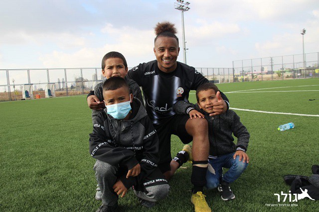 ליאור אסמרה עם ילדים שהגיעו לעודד את הקבוצה (צילום: דף הפייסבוק עירוני כסייפה)