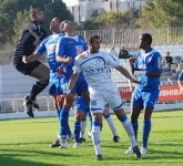 תום מונד(מוסתר בכחול),כובש את הראשון של הרצליה.(צילום:אמיר דבי)