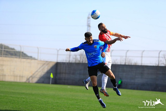 עמית תקתוק ונביל עלי במאבק על הכדור (צילום : חגאג רחאל)