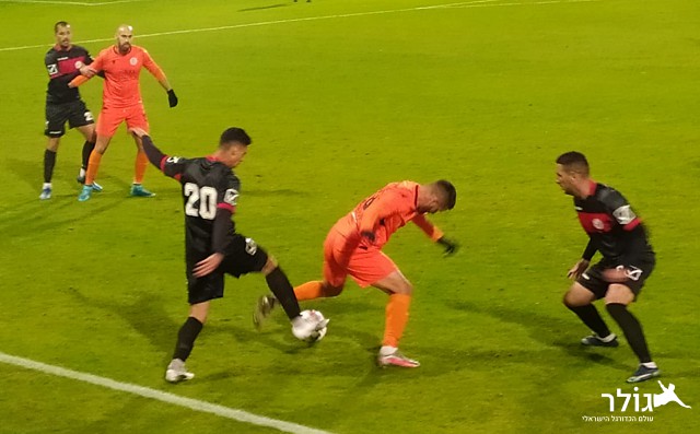 לאחר שלוש דקות בלבד הכתומים עלו על לוח התוצאות. אליאור סיידר פרץ יפה באגף, חלף בקלילות על פני יובל בן עמי הצעיר והעביר רוחב, אוהד אדלשטיין לקה בהרחקת הכדור שהגיע דווקא ליאיר שפונגין שמקרוב הכניע את סתיו פלזנטל, 1-0 מהיר לכפר שלם. זהו שערו הראשון של שפונגין העונה.