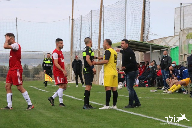 חאלד חלאיילה, אמיר כהן ועידו גונן בשיח עם השופט (צילום : מחסאן נסאר)