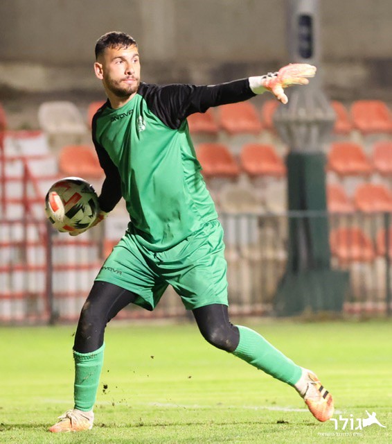 השוער אורן טל מוסר את הכדור (צילום : חגאג רחאל)