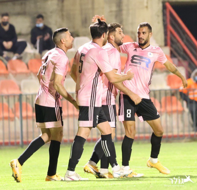 שחקני ריינה חוגגים את שער ההיתרון (צילום: חגאג ראחל)