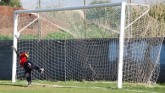 בעיטה מדוייקת מהעונשין של עודד סלם. דין ססי בנסיון ללא הצלחה. (צילום:אמיר דבי)