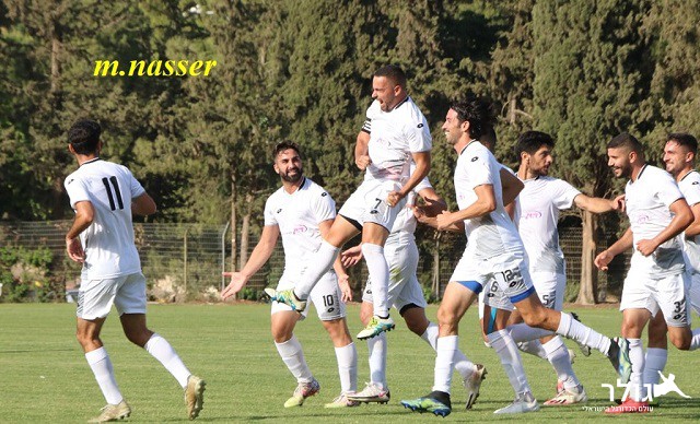 מידן שטיינברג ושחקני כרמיאל חוגגים במשחק הקודם נגד עכו - האם יחגגו שוב? (צילום: מחסאן נסאר)