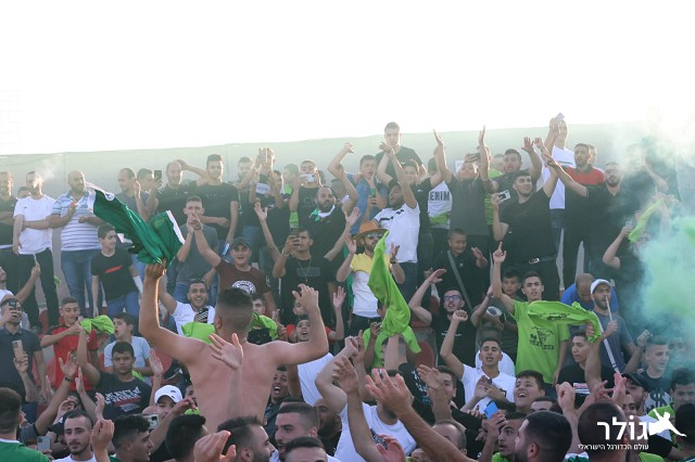 מוחמד עואודה חוגג ניצחון ענק עם הקהל (צילום : חגאג רחאל)