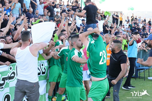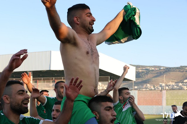 שחקני כפר כנא חגגו דקות ארוכות עם הקהל (צילום : חגאג רחאל)