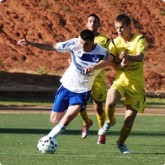 טואף ניר (בצהוב) לא נותן ליחי זכריה מאזור לעבור אותו. (צילום:אמיר דבי)