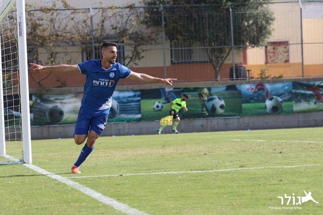 ניר אברג'יל כובש ורץ לחגוג (צילום: עודד חסין)