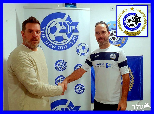שלומי ביטון ברגע החתימה עם שגיא גונן - סומכים עליו שיספק את הסחורה (צילום: אבי פוקס, דוברות מכבי נווה שאנן אלדד)