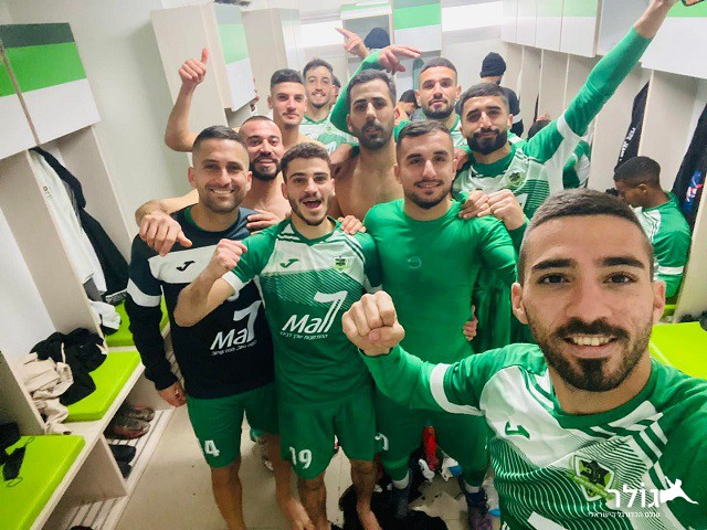 שחקני שדרות חוגגים את הניצחון (צילום: דף הפייסבוק מכבי עירוני שדרות)