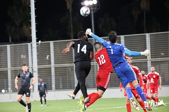 דור מלכה עם שלושער לרשת של רובי שפירא (צילום : מוחמד אמארה)