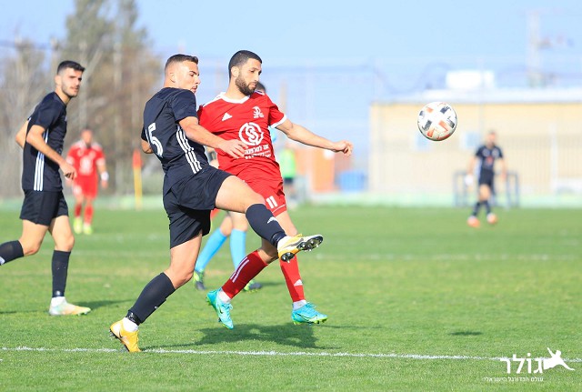 עבד חמודה נאבק על הכדור (צילום : עלאא בדרנה)