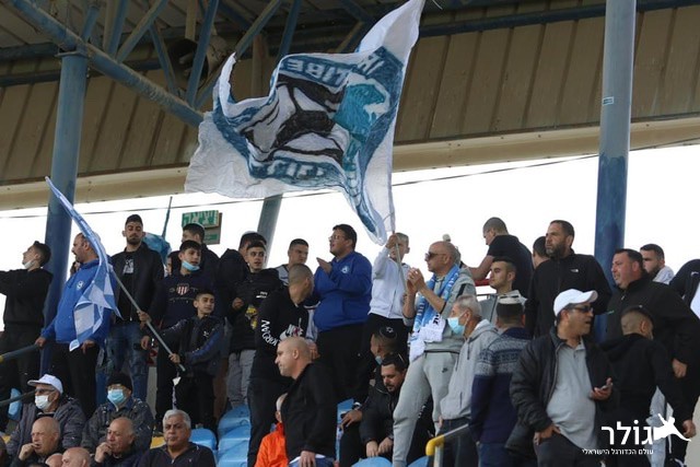 אוהדי טבריה שהגיעו לתמוך בקבוצה (צילום: עודד חסין)