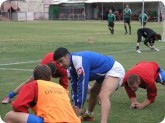 תומר שרמן, שוער מרמורק, מנסה למשוך זמן, השופט זירז אותו לקום. (צילום: יאיר שמע קדמי)