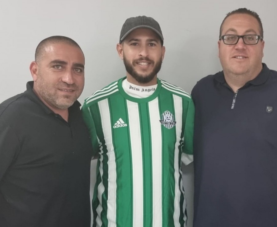 אלעד בן דוד וסוכנו גיא וייס מיד לאחר החתימה על החוזה בשדרות.
