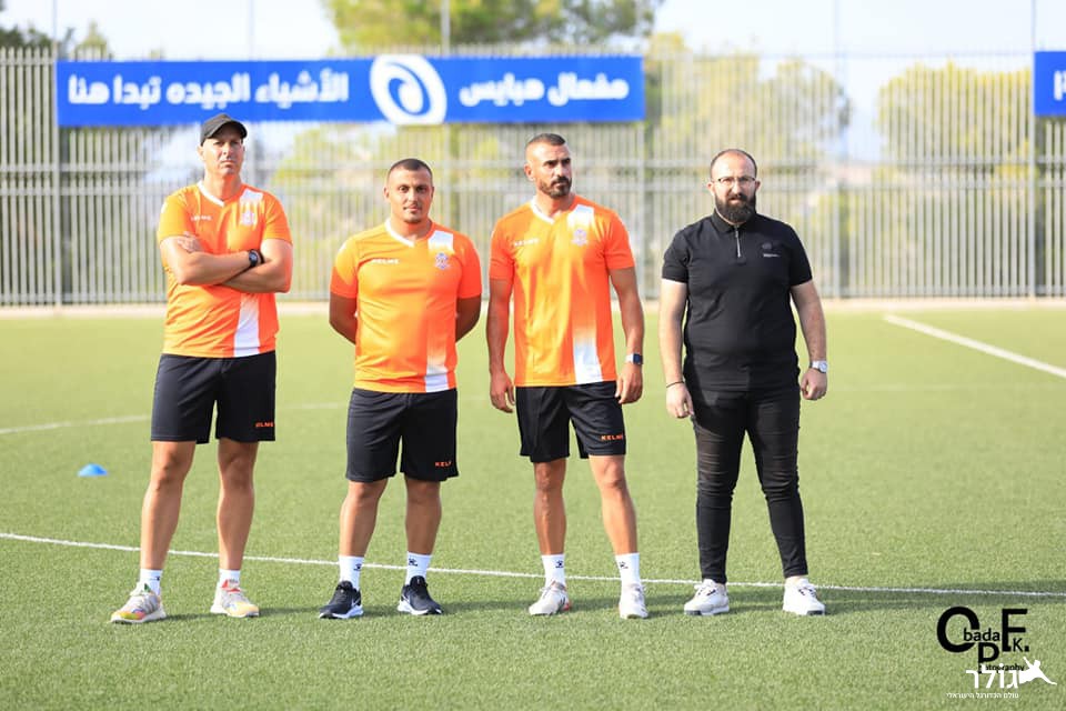הצוות המקצועי בראשות פיראס מוגרבי מאמן הקבוצה. צילום: עובדה אכתילאת