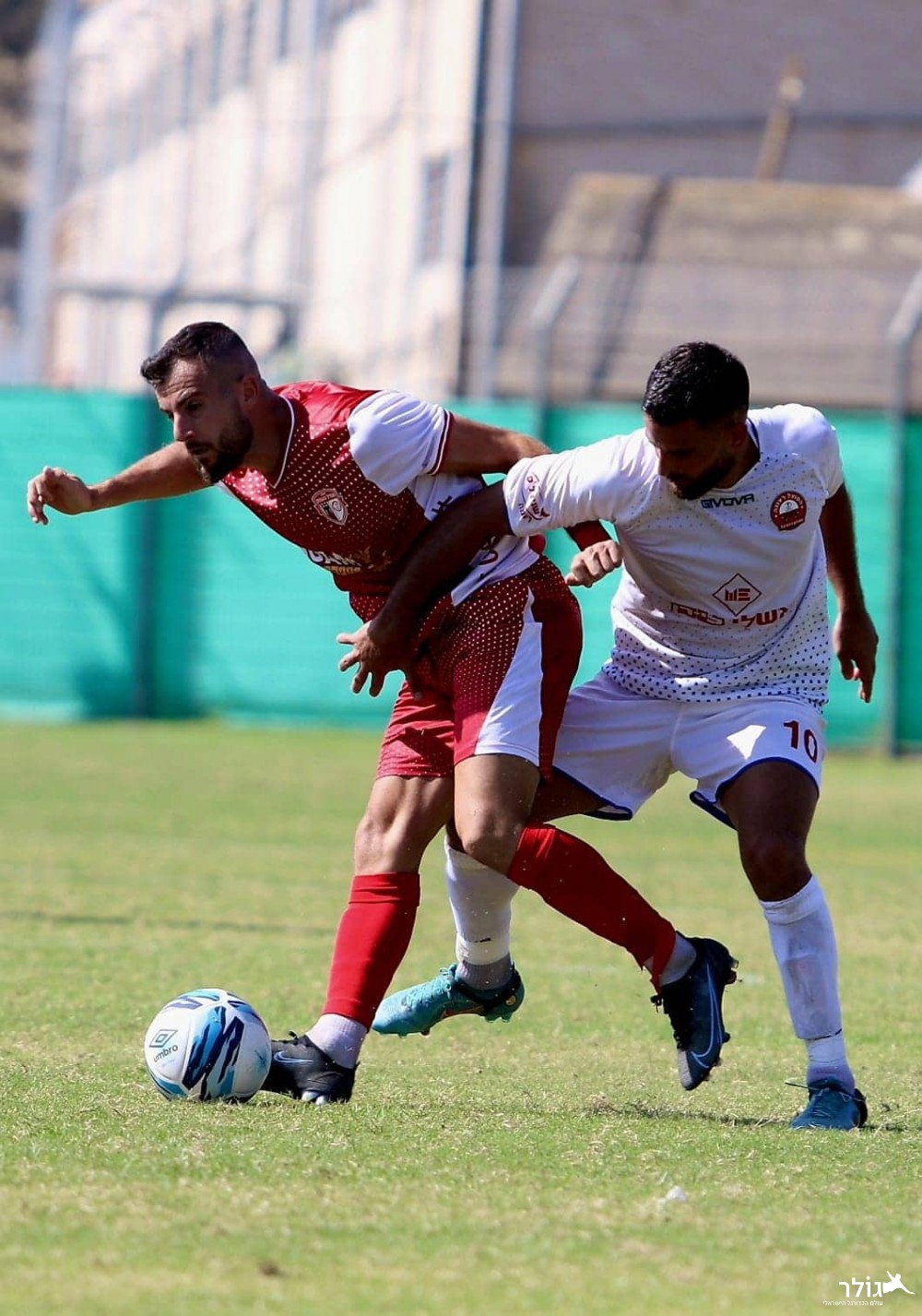 שחקני אתא ביאליק וקלנסוואה במאבק על הכדור. צילום: חגאג רחאל