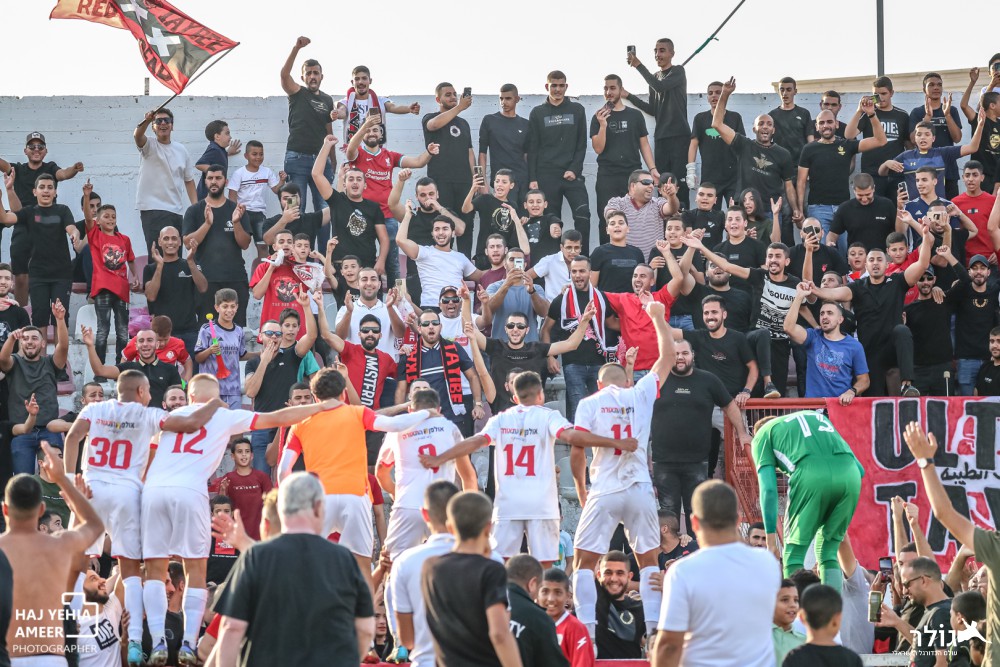 שחקני צעירי טייבה חוגגים לצד קהל אוהדי הקבוצה. צילום: אמיר חאג יחיא