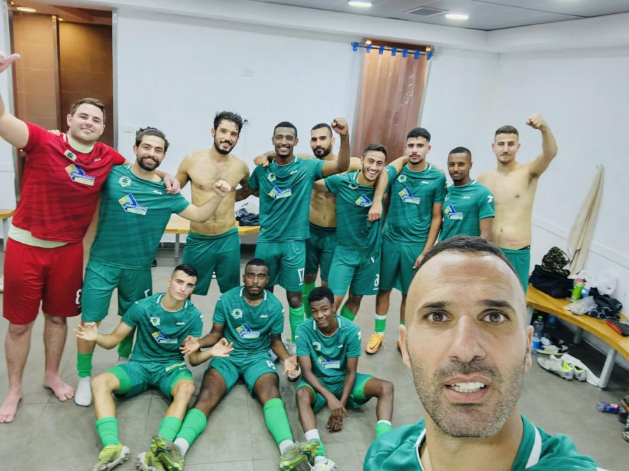 שחקני מכבי עירוני שדרות חוגגים ניצחון על אשקלון. צילום: פייסבוק מכבי עירוני שדרות
