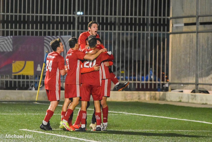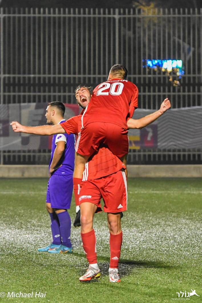 ניקו כץ חוגג את כיבוש השער השלישי להמכתש. צילום: מיכאל חי