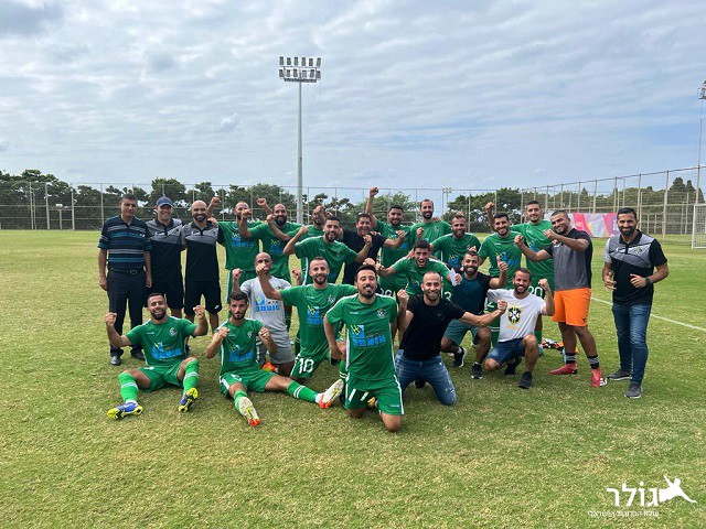 שחקני כפר קרע - חוגגים ניצחון צילום: דוברות איחוד בני כפר קרע