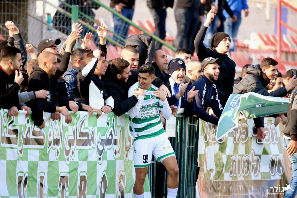 אנס נאסר, חוגג בסיום המשחק עם קהל אוהדי הקבוצה. צילום: חגאג רחאל
