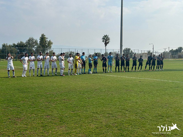 שחקני שתי הקבוצות רגע לפני שריקת הפתיחה (צילום: דוברות הפועל בית שאן)