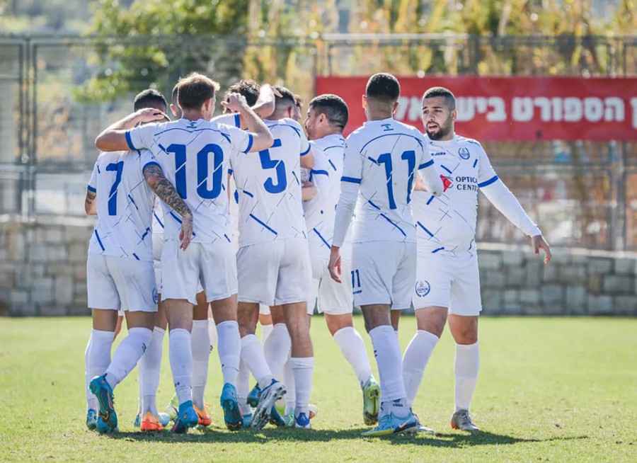 שחקני מ.כ ירושלים חוגגים עליה לפלייאוף. צילום: דניאל עמר
