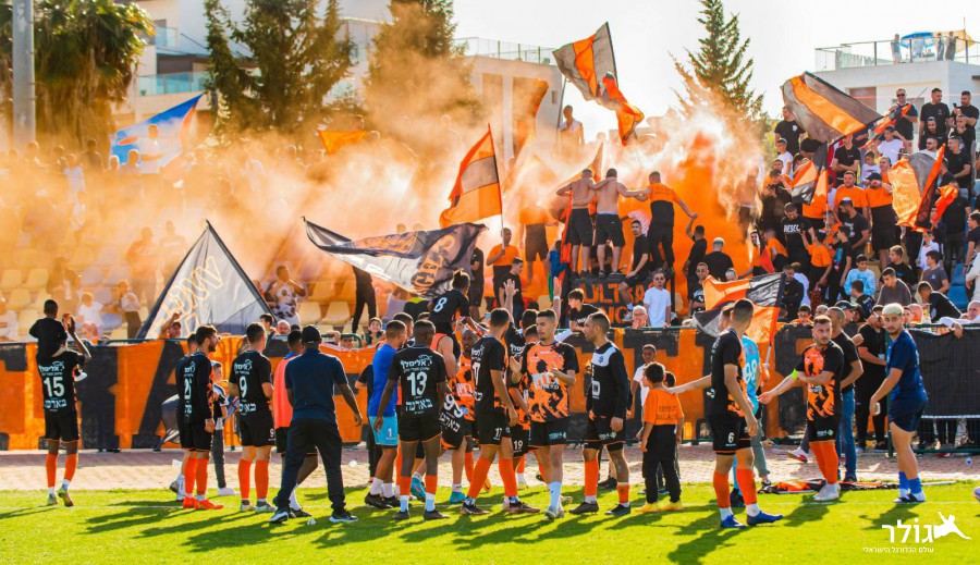 שחקני קריית מלאכי, עונה גדולה מסתיימת בעליה לליגה א'. צילום: שלומי אבוטבול