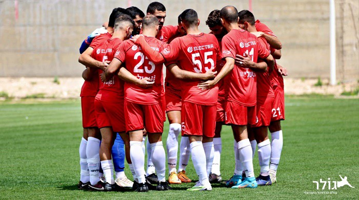 שחקני הפועל באקה אל גרביה לפני המשחק. צילום: חגאג רחאל