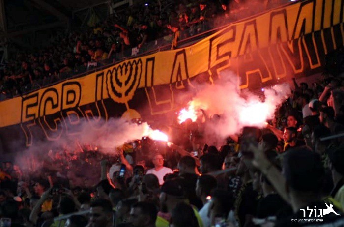 אוהדי ביתר ירושלים חוגגים ביציע. צילום: אביב עובדיה