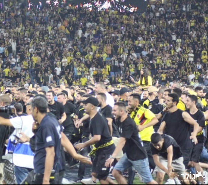 אוהדי ביתר ירושלים נכנסו למגרש. צילום: אביב עובדיה