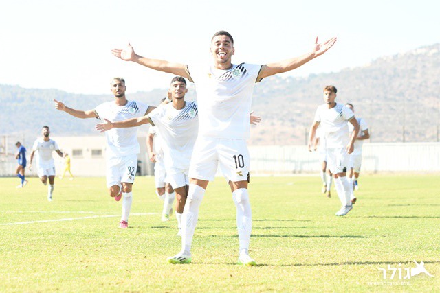 שחקני אחי נצרת חוגגים ניצחון מרשים (אבי רביבו)