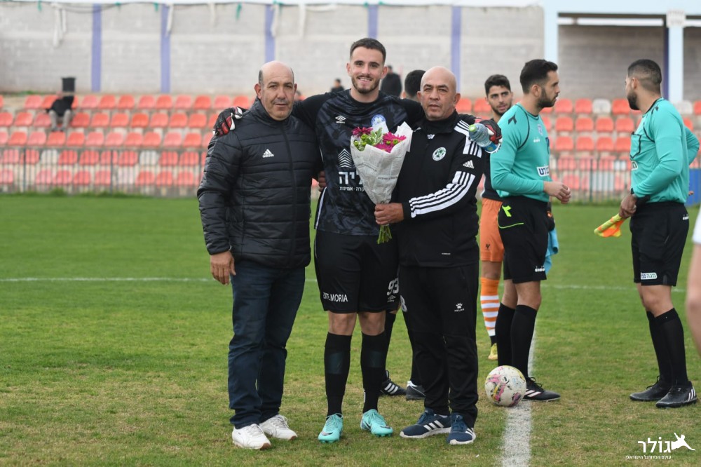 לפני המשחק העניקו לשוערם לשעבר דורון מיכאלי פרחים. יודעים להעריך בקרית ים. קרדיט צילום: אבי רביבו