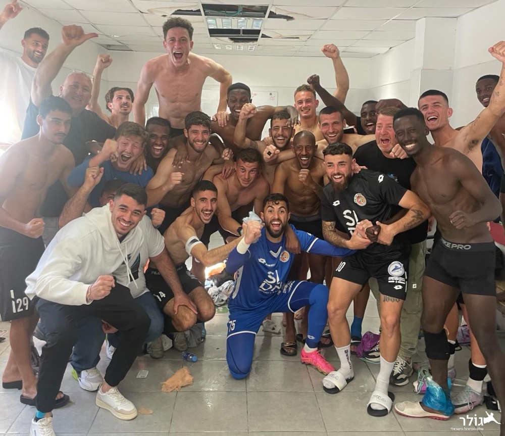 עעוד ניצחון דרמטי. שחקני כפר שלם חוגגים (יח"צ)