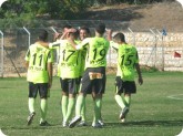 שחקני מכבי שעריים חוגגים בסיום. בשבוע הבא, היא מארחת את השלישית, מ.ס. קריית גת.