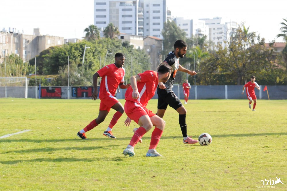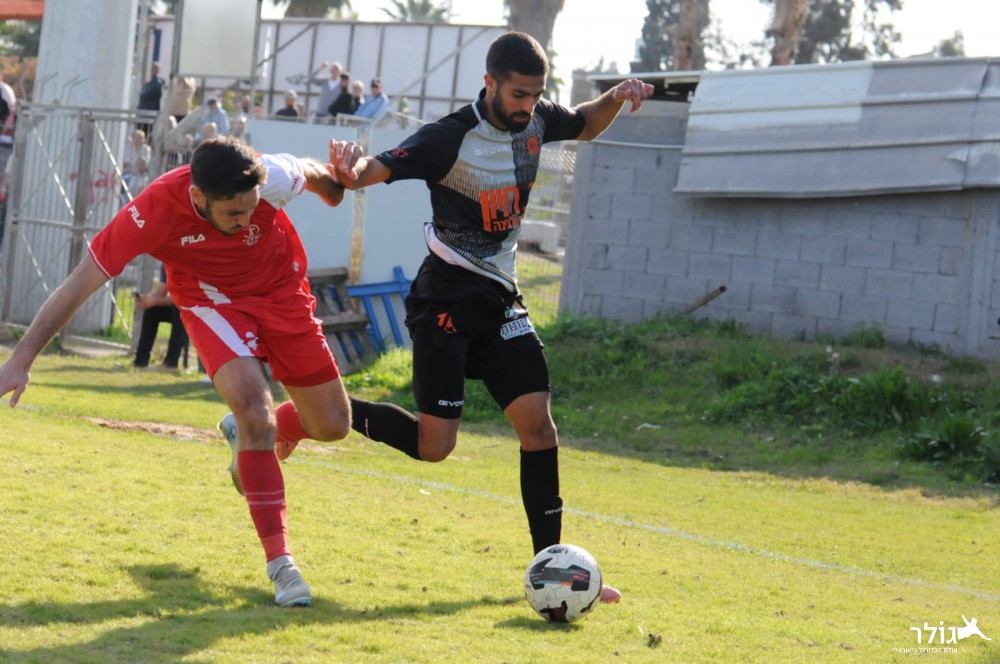 משחק טקטי. אלמוג אסרף (באדום) וטריקו גטהון (אוהד רון)