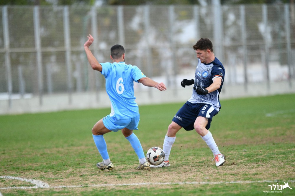 המשחק לא התעלה לרמה גבוהה. אביתר ברק (מימין) מול לואיי שעבן (עדי דיטליס)