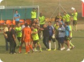 אנשי שתי הקבוצות במהלך המהומה שפרצה בסיום על כר הדשא.