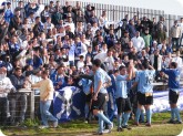 אוהדי שעריים חוגגים בסיום המשחק 13 , פור. הם נראים מוכנים מול אזור.