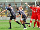 ההצגה בעיצומה. שחקני כפר-סבא חוגגים על חשבון הפועל (צילום: גיא חזקיהו).