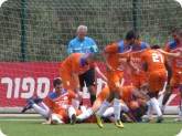 שחקני ראשל"צ חוגגים את השער הראשון (צילום: ניר שמיר).