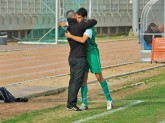אורי קרגולה חוגג את הנצחון על יפו עם הספסל של עמישב. קרגולה מול יפו רואה רק רשת.(צילום:גיא חזקיהו)
