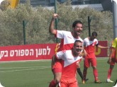מתן אפריאט (למטה) חוגג את שער הניצחון (צילום: ניר שמיר).