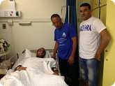 בני סיני וכפיר קירט (הבן של שלמה קירט) מאוהדי שעריים, ליד מיטתו של ליאור. שאפו! (צילום: יח"צ)