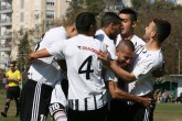 שחקני מחנה יהודה חוגגים את הניצחון שכנראה מבטיח את עלייתם (צילום: אדי חליאבין)