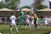 גבי בורנשטיין, שוערה של קרית אונו נמצא גבוהה מעל שחקני גדנ"ע. (צילום: איתן ידגר)