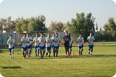 שחקני הקבוצה בחימום אימון הפתיחה. (צילום באדיבות חוג אוהדי קרית גת)
