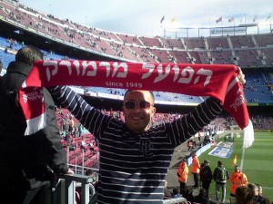נתי יחיא, אוהד מרמורק כבר 37 שנים, גם בקאמפ נואו לא שוכח את קבוצתו (צילום: באדיבות נתי יחיא)